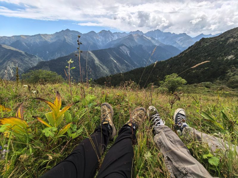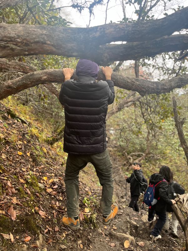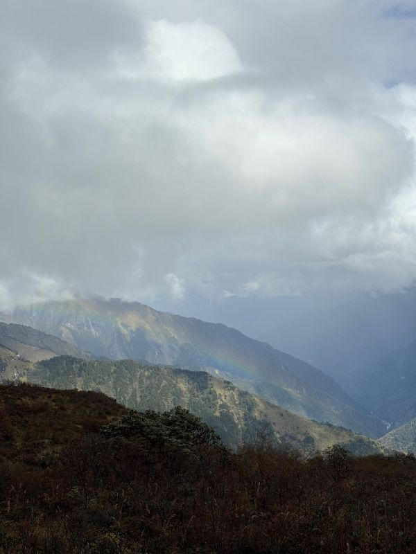 有两段路比较烂,全是稀泥巴,下了点小雨但是下山的时候有彩虹。两位领队都很好,帮我们拍了很多照片。