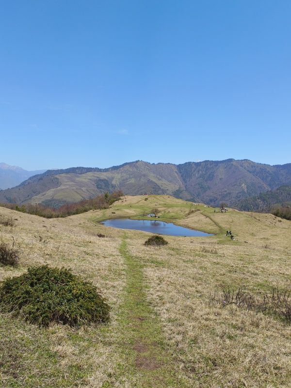 今天运气好,中午有会小太阳,领队小苏很照顾队友,帮忙拍照!关心走的慢的人。玩的很开心!山上风大有点冷。沿山脊有一片树叶红的黄的尤其好看!不虚此行~