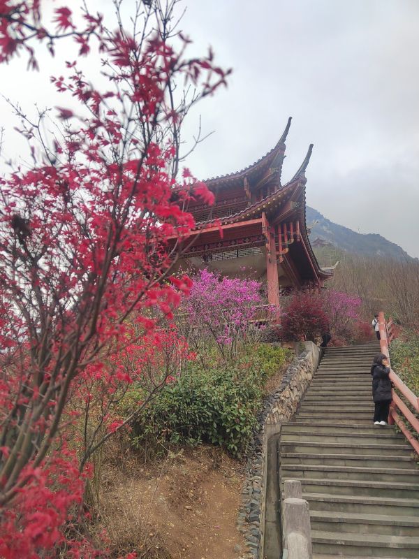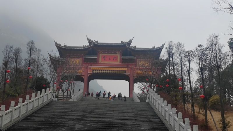 天气的雾有点大,主要是楼梯,有些伙伴爬的比较快,一个多小时就登顶了,下山时间比较早,跟着领队去逛了一圈街