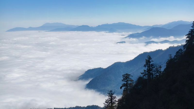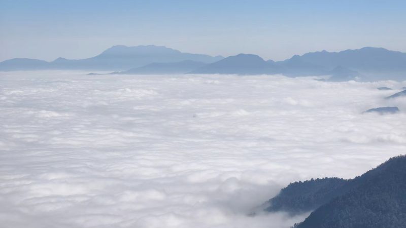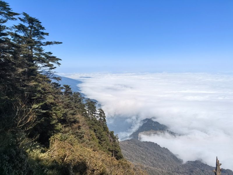 第一次到瓦屋山就非常幸运遇上暖冬艳阳,见到云海、冰瀑还有猴子