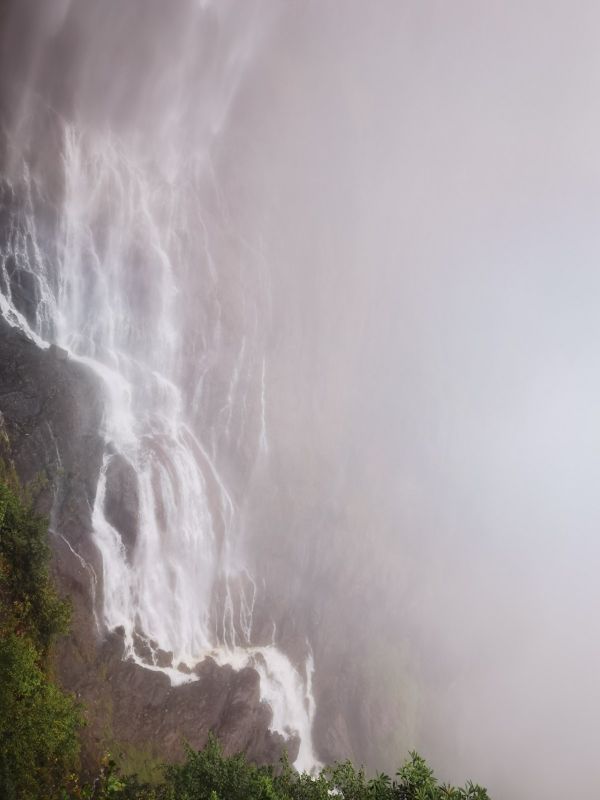 去的时候天气不好,下雨,水雾超大,瀑布水量也超大,雨衣+雨伞也没用,裤子鞋子全部打湿,但是能感受不一样的瓦屋山风景,不要门票的季节,还是值得一去