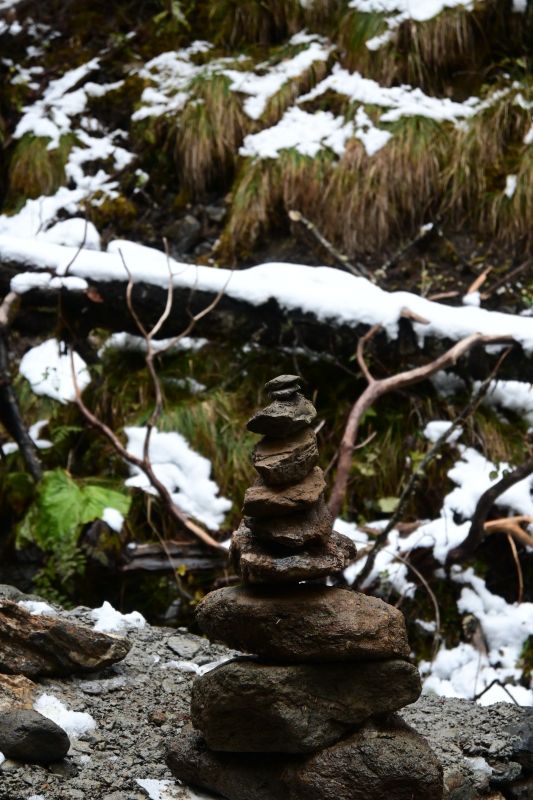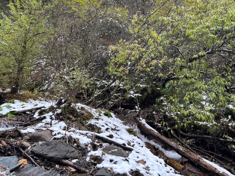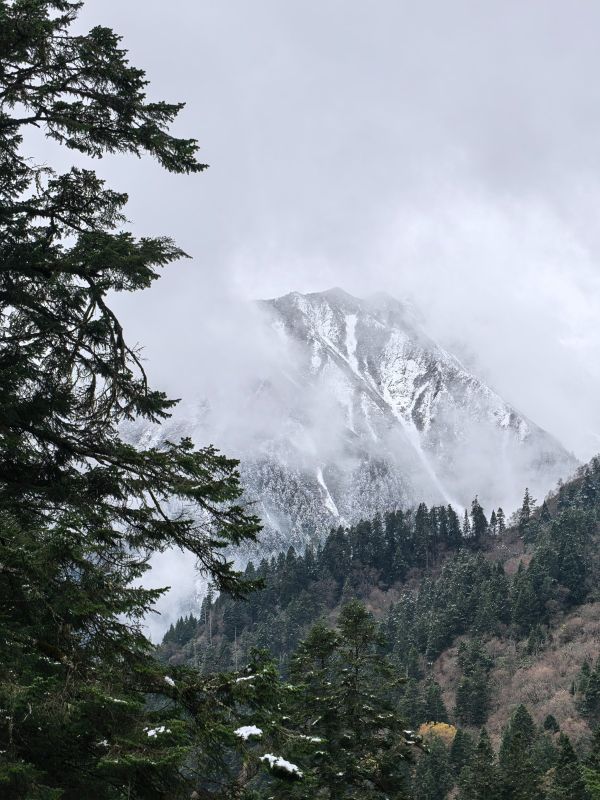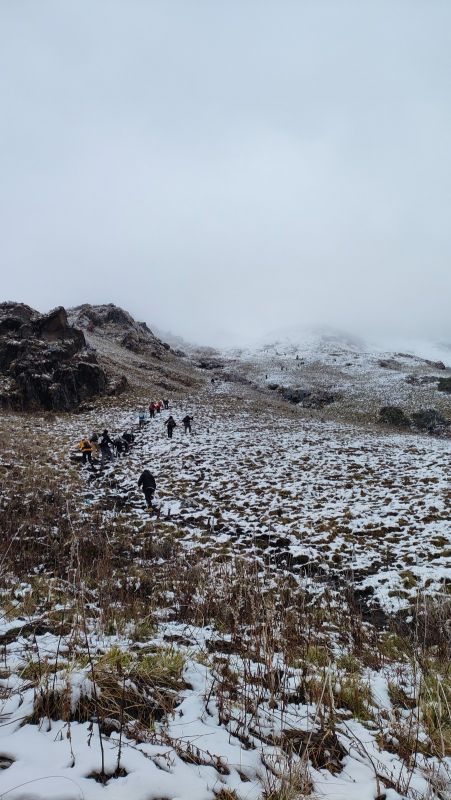 风景特别棒,前两天刚下了雪,刚上山时看到的都是雾凇。往上爬下起了小雪,瞬间入冬,太有氛围了!领队石榴很专业负责,给大家准备了雨衣,给大家详细介绍了路线,和一些安全提示,并且给大家拍了很多好看的照片,点赞!
