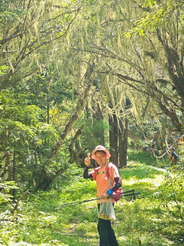 整体坡度较大,比较累脚,观景台比较小,这个时节登顶也只能看到青山,没有雪山。捡菌子捡得很开心但不敢吃哈哈哈。需要做好防晒,带够1500ml的水。云瑞领队感觉在说话演讲方面还稍微有点子青涩哈哈哈,领队们整体还是不错的