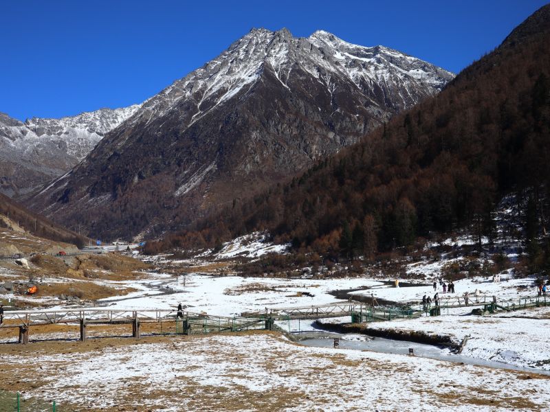 景观丰富多样:海拔落差1600米,将雪山、彩林、红石滩、河流、瀑布、草甸等景观尽数收揽,构成了川西最浓缩的“自然博物馆”,让游客“一日阅尽川西色”。
