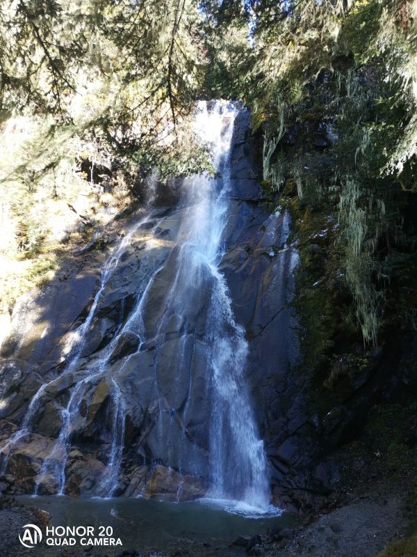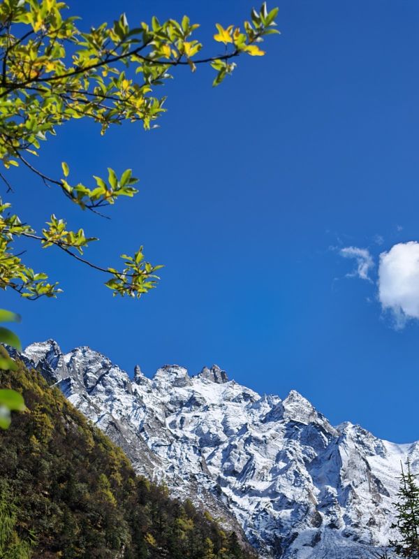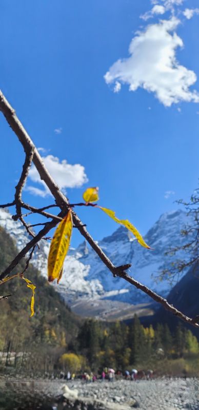 女王大人领队很好,带人热情,还给大家拍美照,今天天气很好,阳光照射在雪山上,彩林还是绿黄绿黄的,也很漂亮。