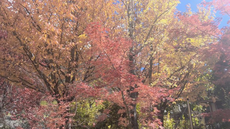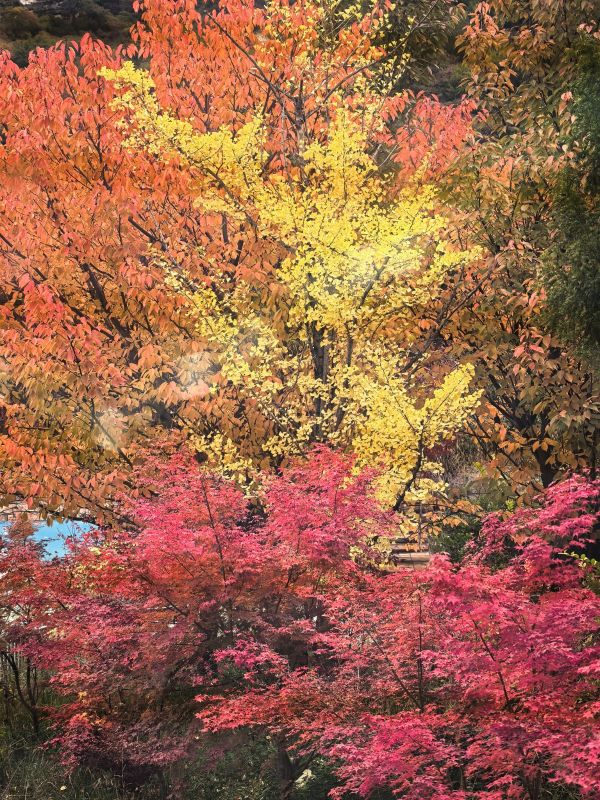 有隐藏小路,全是五颜六色的落叶,堆满了一地。走上去咯吱咯吱的清脆声超解压。