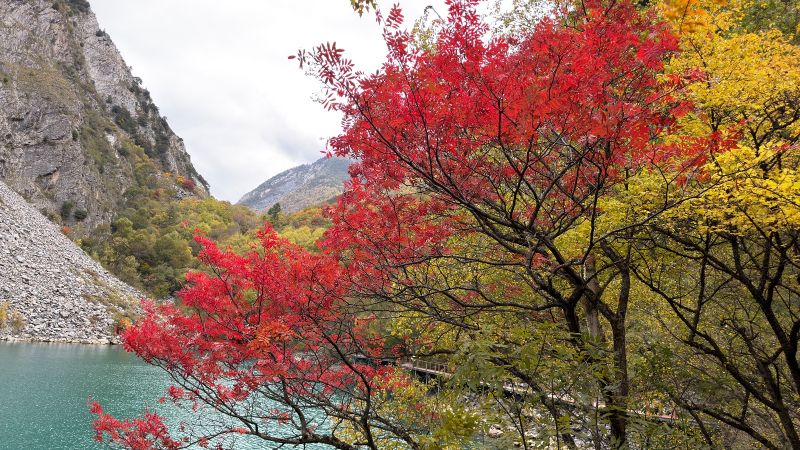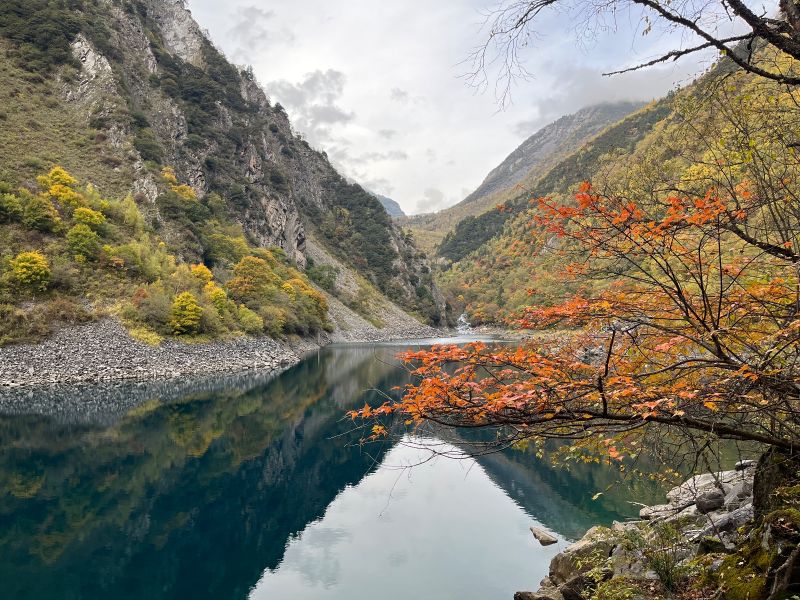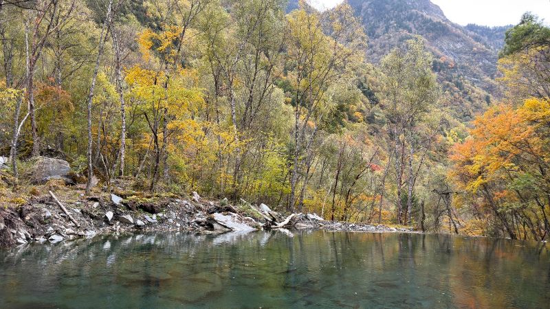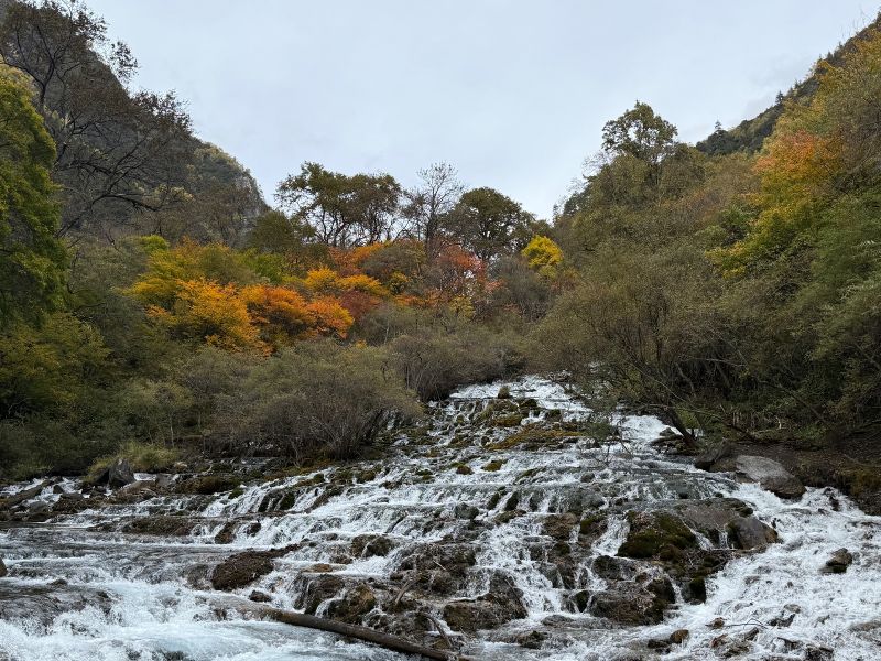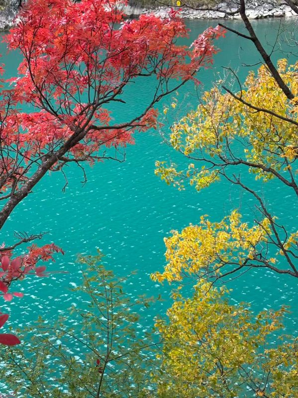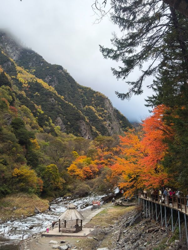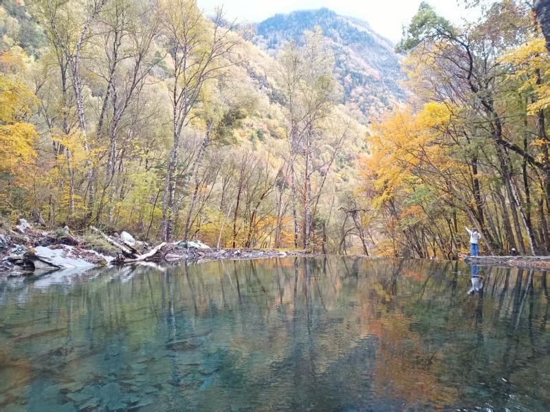 彩林正当时,可以冲~大家都建议坐车坐到上面慢慢走下来,我建议从下面走上去,坐车下来。下面的海子更漂亮,刚到,精力充沛,一股脑赏美景拍美照,走到上面走不动了可以再坐上去看看,然后坐车下来。