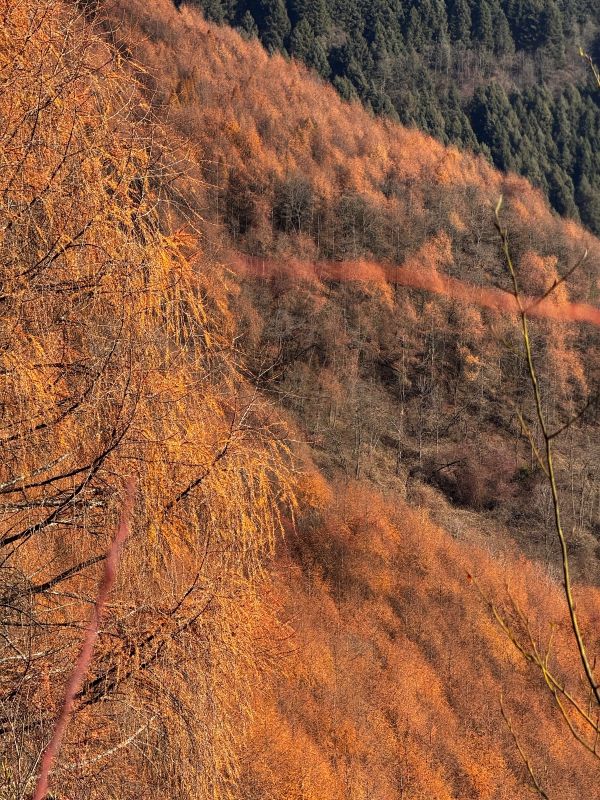 秋天的彩林实在太美了。导游阿枫非常尽职,上山下山都照顾这每一个队友,还把自己的手杖给队友使用,路上不停地给每个队友拍照。回程路上,还贴心地把小腿拉伸的方法教给大家。