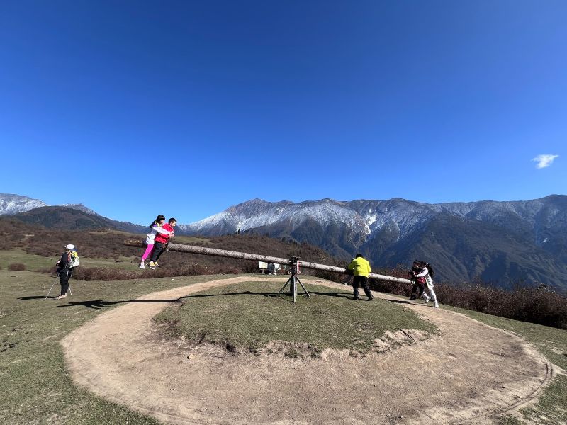 有点累,但能登顶,风景也很好,还有牛马,秋千。顶上有吃的
