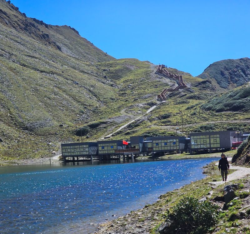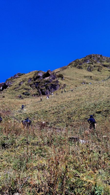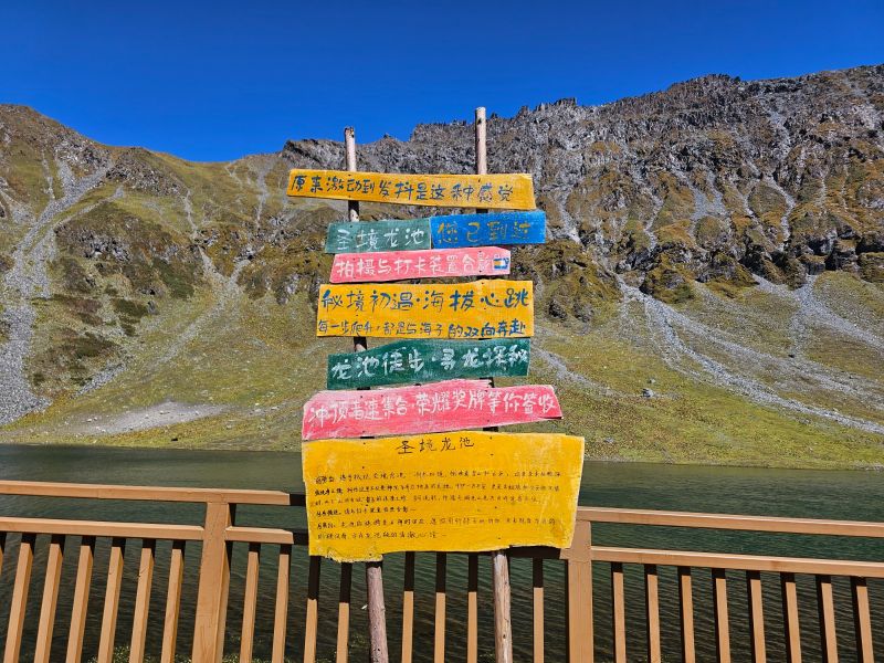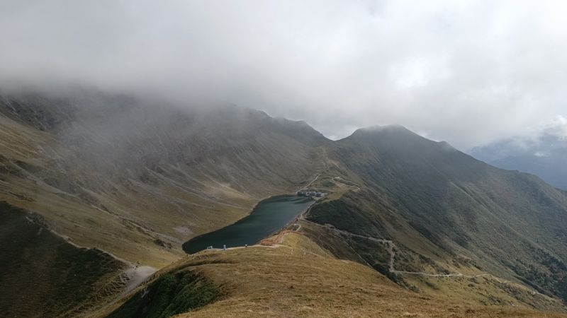 今天天气不错,幸好没有出现领队说的雨加雪天气,今天爬升4个半小时,已经尽了自己的最大能量,好在爬到了龙池,唯一的遗憾就是没有登顶