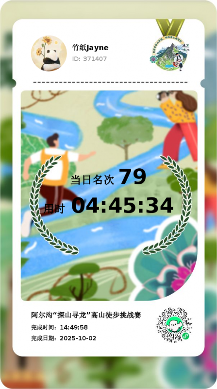 第三次跟团了,整体体验很棒,奎木狼领队很负责,确保每个人都能安全顺利下山,最后拿到奖牌啦,开心。下次继续。