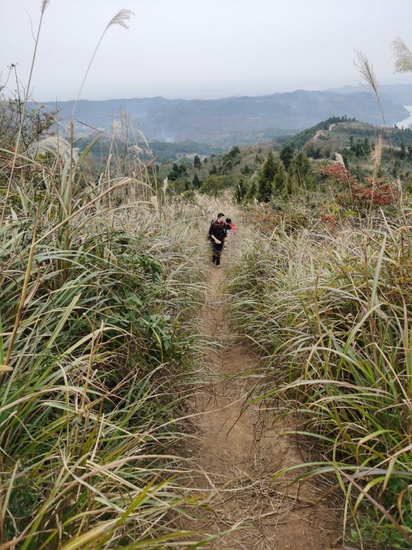 今天虽然没有预期的灿烂阳光,但行程很好。爬上这个老牛坡用了近两个小时,但大部分都是泥巴路好走,坡不陡,出了全身的汗,刚好达到锻炼的效果。路边的芦苇,红果很多,两者相映,拍照好看。