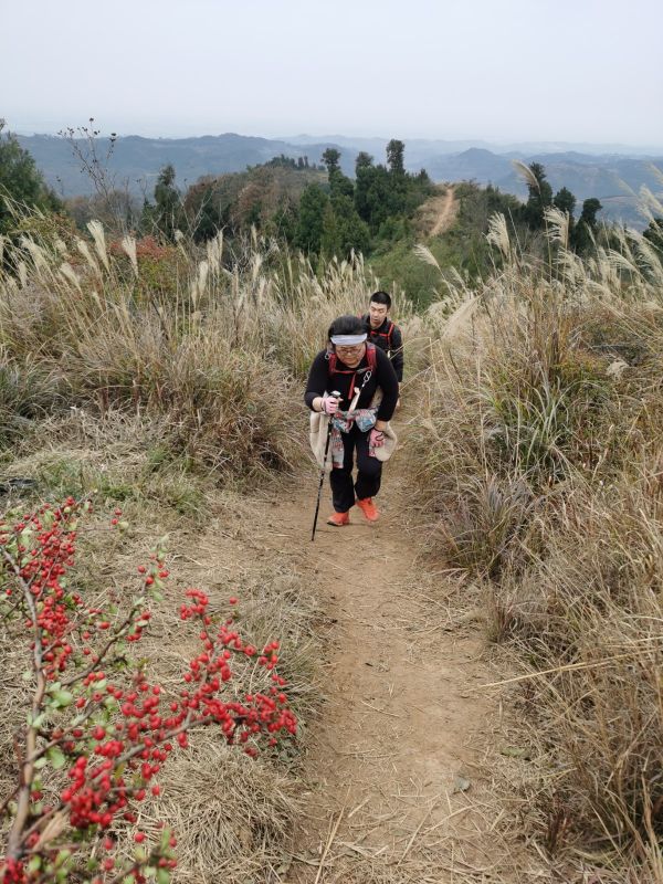 除了天气阴,其它都很ok。 整体行程比较轻松,爬坡上坎几乎没有太大难度。 一路景致也还不错,一条路在山脊蜿蜒前行,到处都能看到红红火火的火棘。 领队也很尽职。