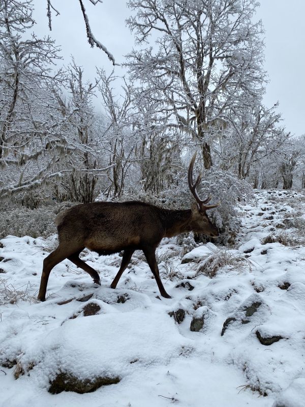 一次愉快的旅行,导游很负责,还遇上了鹿和猴子,雪景很美