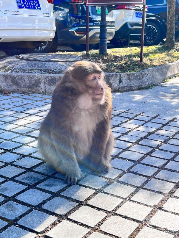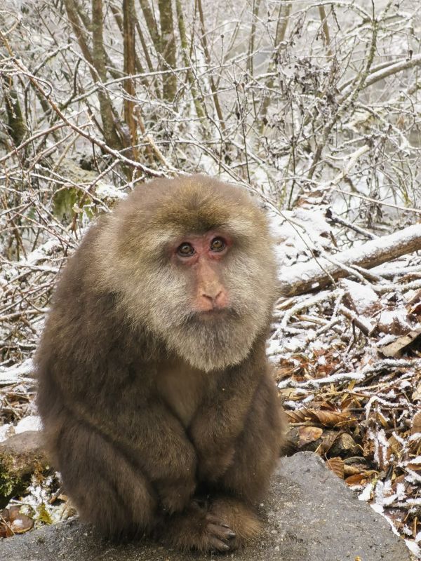 猴子非常顽皮,山顶雪非常厚。领队认真负责。