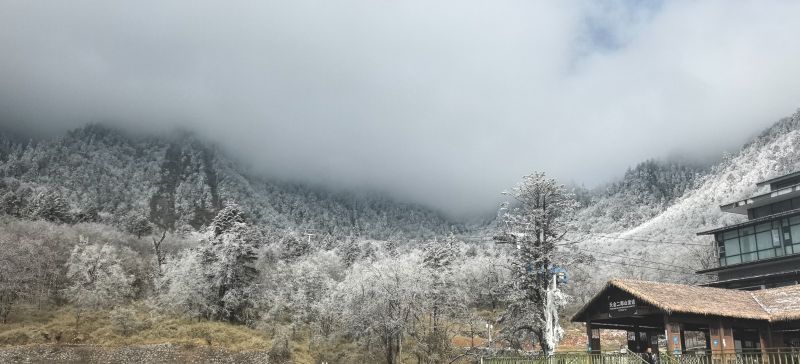 山上下雪了,就是雾太大,雾凇还是挺漂亮的