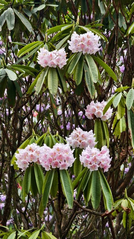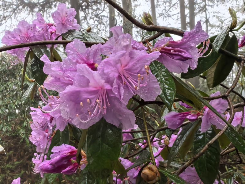 徒步到杜鹃花林,真的是震撼到了,很大一片,争奇斗艳,好几个品种杜鹃,各有特色,猫儿山杜鹃,芒刺杜鹃,腺果杜鹃等等…一路还很多猴子