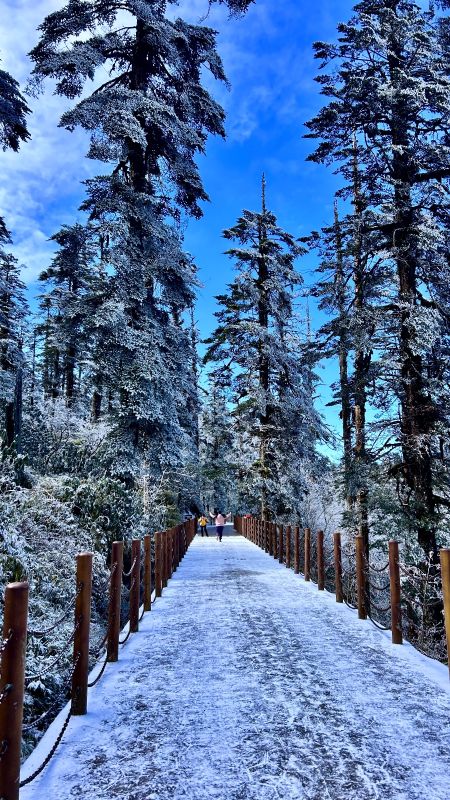 阳光下初雪❄️的瓦屋山很美,小杜领队专业热心棒棒哒