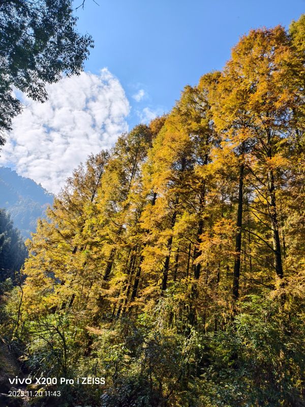 这个风景很巴适,空气质量特别好,彩林很出众,领队人很好,带队带得很好