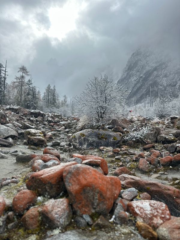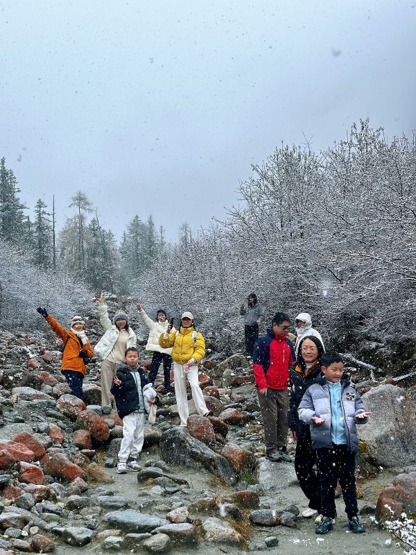 秋假这趟真的来对了,第一天虽然坐了很久很久的车,但是在小召的带领下,我们顺利进入四姑娘景区游玩了几个小时,拍了美美的照片,景区内人流还好观光车特别多,我们还坐了漂流,孩子很高兴,我也是。第二天到了想念很久的理小路,下车就下雪了虽然雾蒙蒙的,但是也是不一样的风景,下一站就到了红石滩,刚到的时候雪下的超级大,小召带领我们往前面走,我们拍了雪景的照片,一会大太阳就出来了,也不冷特别开心,秋假两天看了秋景玩了雪,值得。小召是特别成熟的领队,有经验,有规划,认真负责。司机师傅也特别好,全程开车很稳,素质也很好不会抱怨一句,最后感恩伙伴们,天使队友,大家很友善准时出发都没迟到哦❤️‍