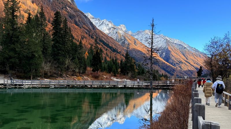 三年前的冬天来四姑娘山漫天飞雪可美了,这次的漫山黄叶也绝美,不一样的视觉盛宴。