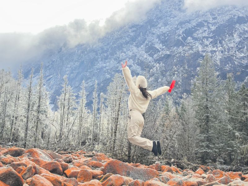成都的第一个秋假,带着孙子参加了此次活动,孙子第一次走进四姑娘山,亲身体验了大自然的美妙和神奇,我们在云雾中翻越了巴朗山,望着窗外的雪山,小朋友兴奋的呼唤;我们走进了红石滩,看到只有在这特殊的地理环境中才能见到的美景……虽然有一点轻微的高反,但他很快就适应了,也是一次难得的体验!这个秋假过得太有意义啦! 我们的领队11,为大家提供友好的服务,很专业很棒!
