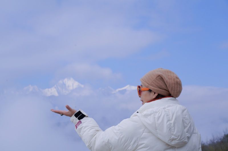 一路欣赏到了彩林,玩了雪,看到了贡嘎,体验了云雾,也体验了蓝天白云,跟着女王大人,感受一年四季,非常认真负责的领队!
