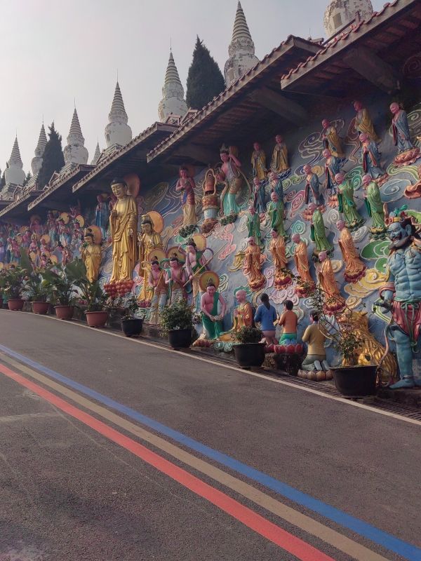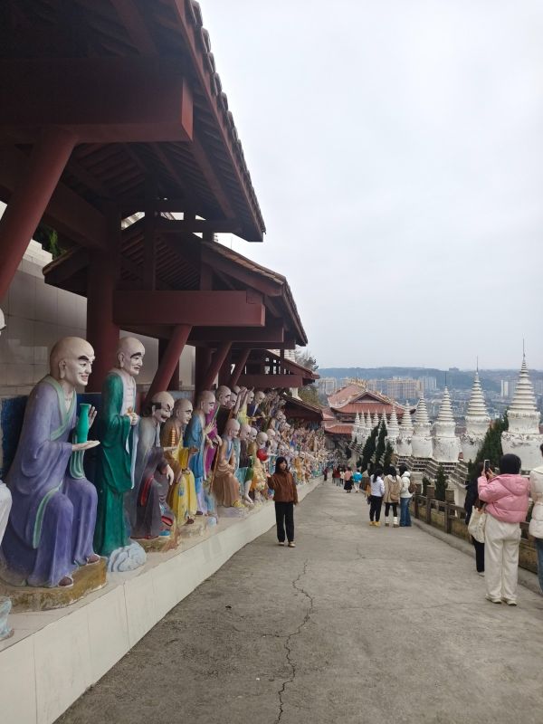 本次lu旅行,遇到可爱的领队晓月,非常专业的同时活泼,非常好相处,路上景点时间非常充足,会根据上次开团的反馈合理安排游玩路线和时间,寺庙非常壮观,有数不清的罗汉,中午在寺庙吃的斋饭,10元一位,非常有性价比。可以不用带零食,水,寺庙都有卖,价格合理。圣水寺的红罗汉造型非常的独特。精工细雕很震撼。消消食后来到三江看红嘴鸥,建议坐游轮,路边有面包卖,5元一个,买完过后直接上游轮,海鸥会围着游轮飞,投食非常的愉快,在岸边投食得看运气,等很久海鸥才会飞来,买的面包就不一定能喂的了。总体来说,旅行非常的愉快,感谢团友和lu默默付出的每位,才有如此不踩坑的旅行