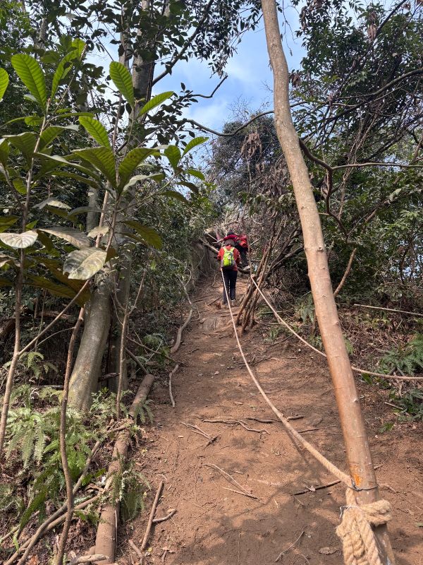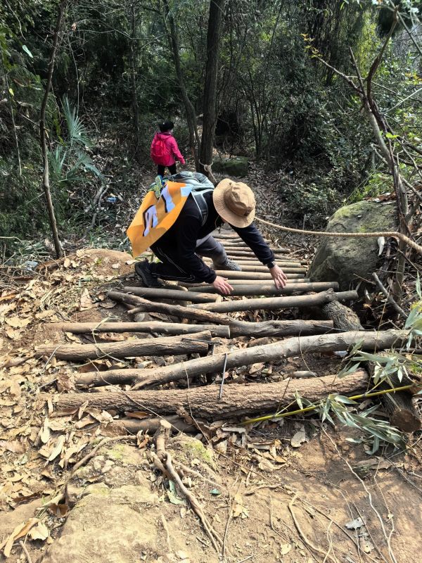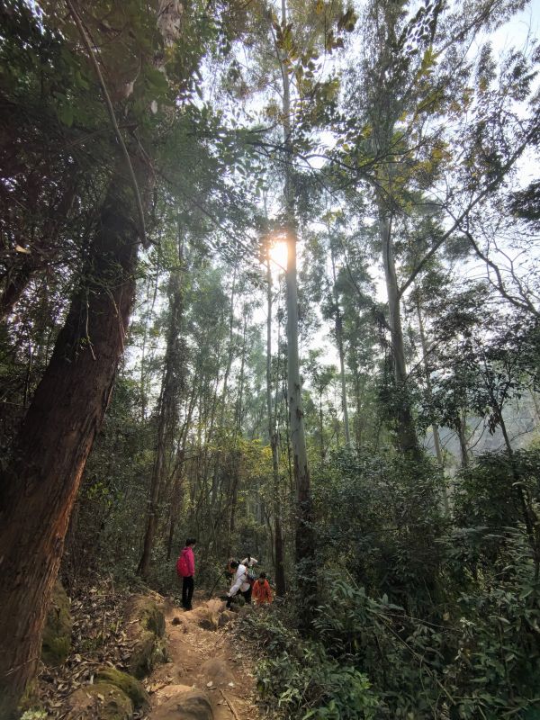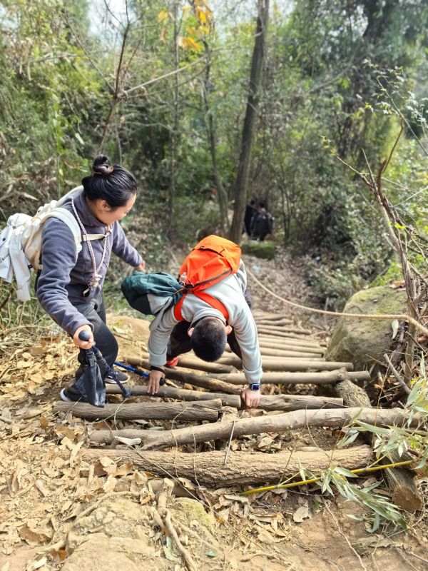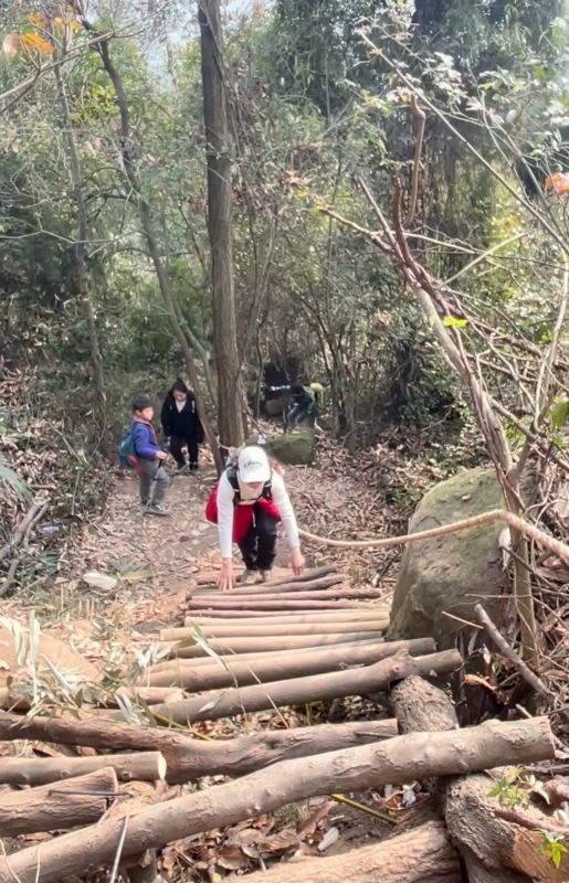 冬日暖阳,徒步老鹰岩,行程还比较轻松,但也有一定难度。木爬梯,绳索攀爬,小朋友玩得开心。唯一不足,山里沙土多,加上人多,扬起很多灰。小耿和肉肉领队很尽心。