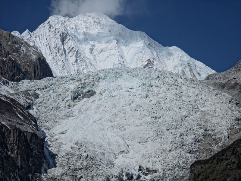 海螺沟·贡嘎之约 慕名而来,终见贡嘎。缆车穿云破雾,雪山巍峨入怀,冰川如银龙卧谷。漫步干河坝,草海子映蓝天;穿行原始森林,古木垂萝似仙境。偶遇藏酋猴,灵动添趣。领队娇娇细致入微,一路暖心相伴。冰川雨林皆入画,此行不负千里来。