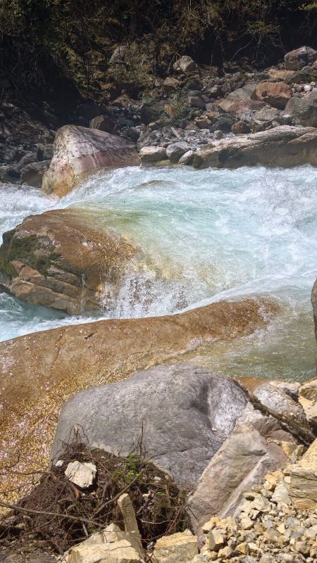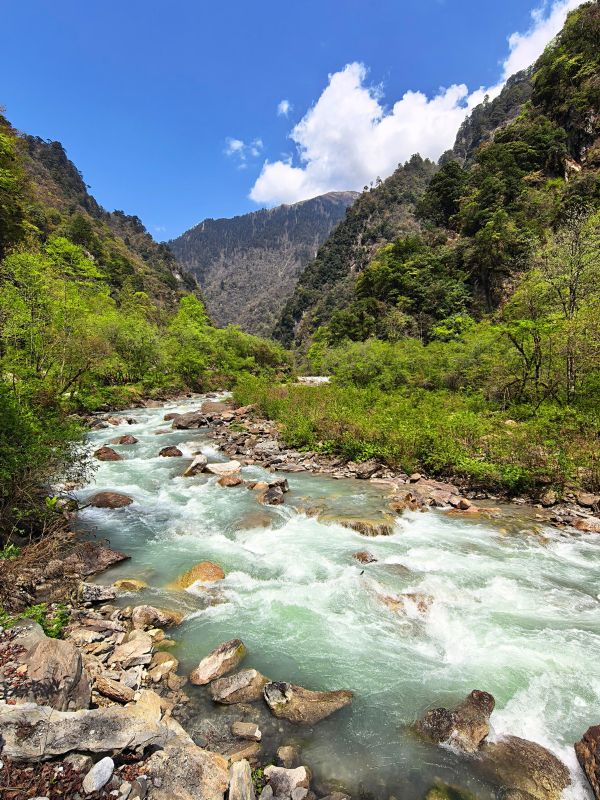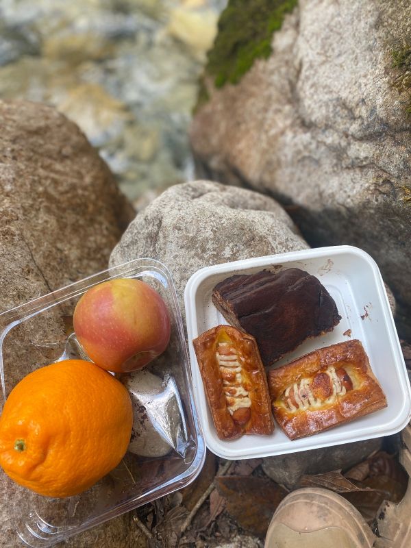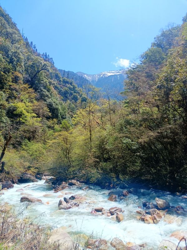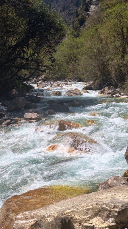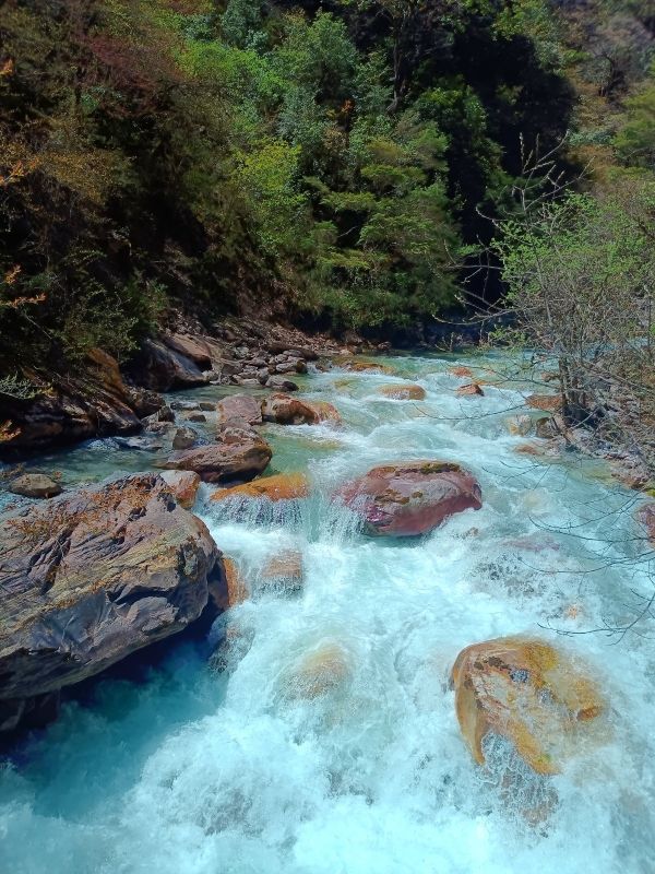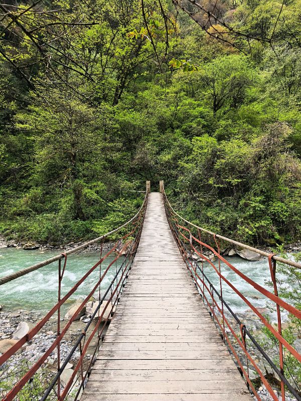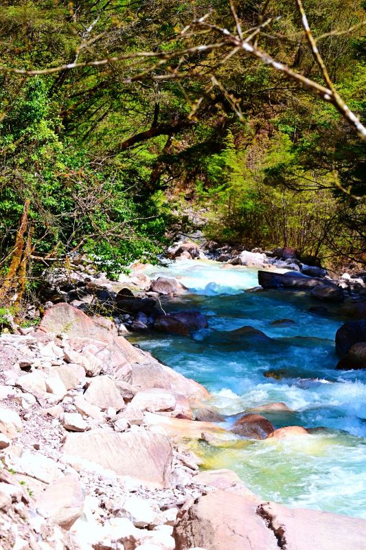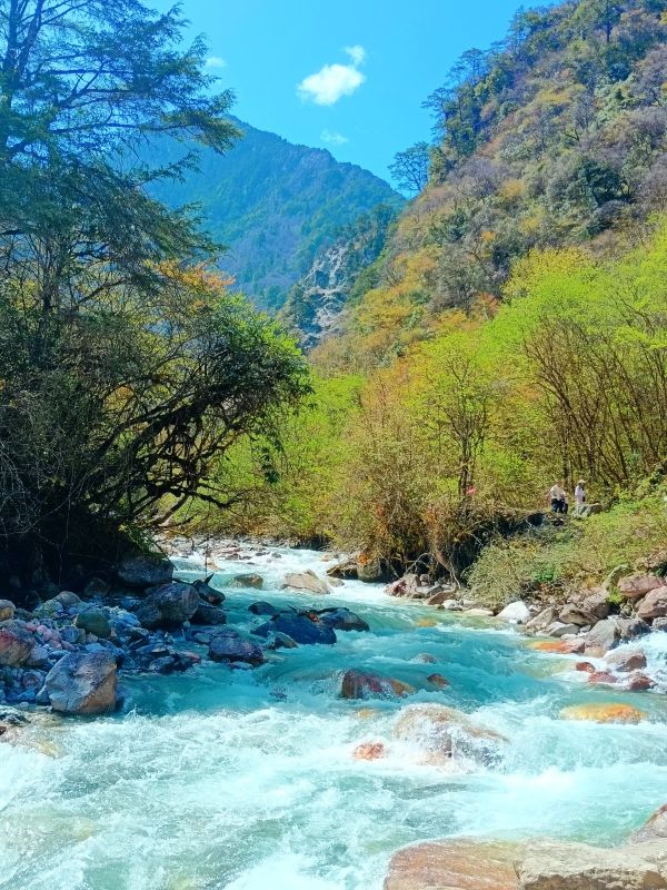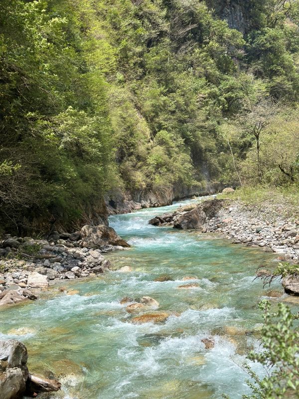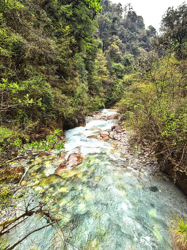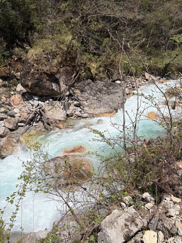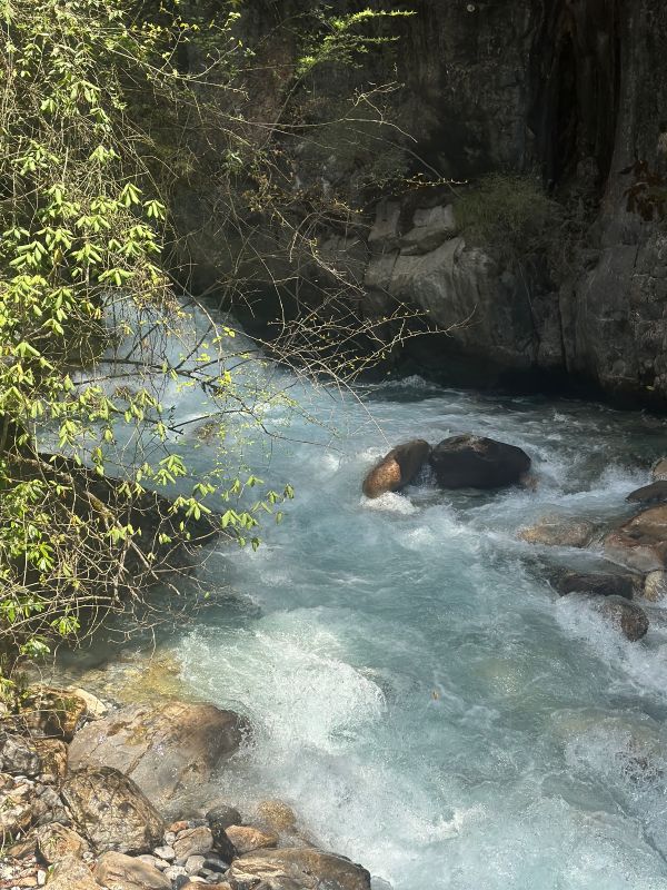 东拉山峡谷有它的特色和缺点,风景还是很不错的,水美,树美,缺点是徒步路规划差了些。午餐在如玉色的山水边进行的,很享受。今天看到了猴子在很高的树上,还采了雪芽菜。领队小召和师傅辛苦啦。