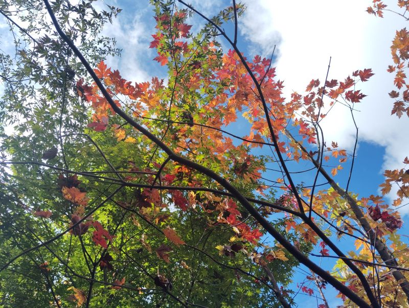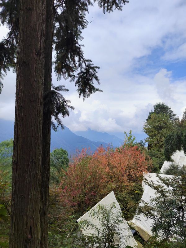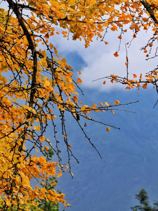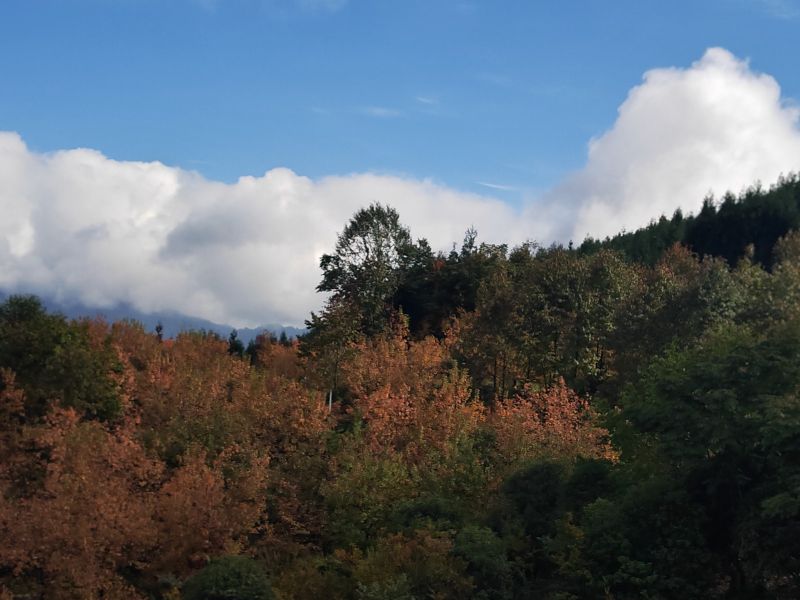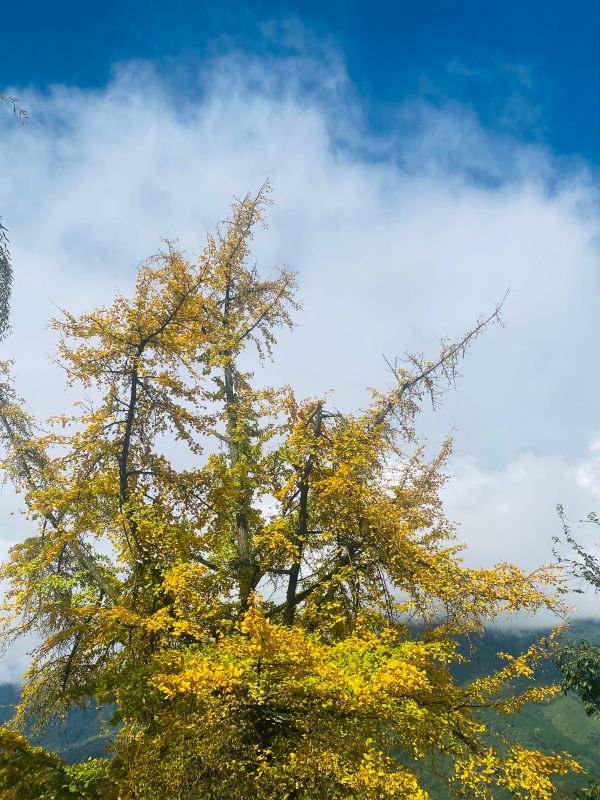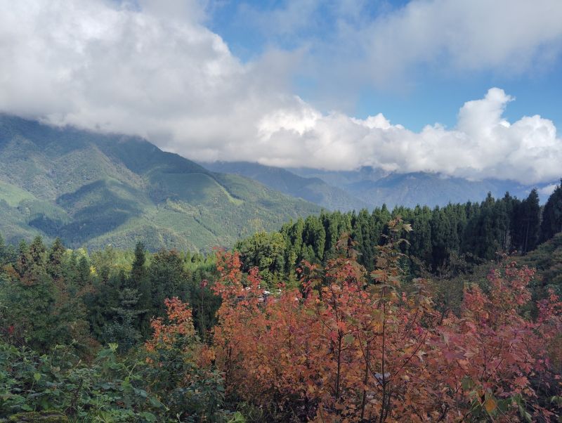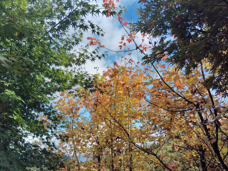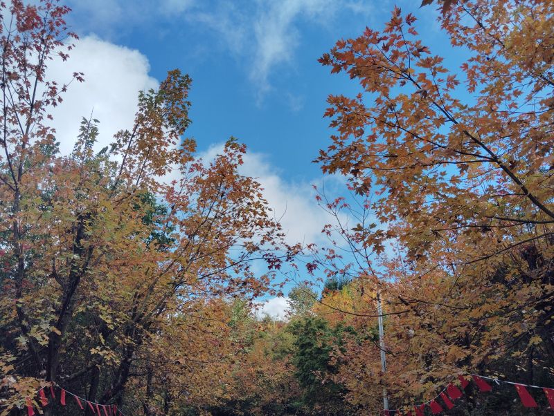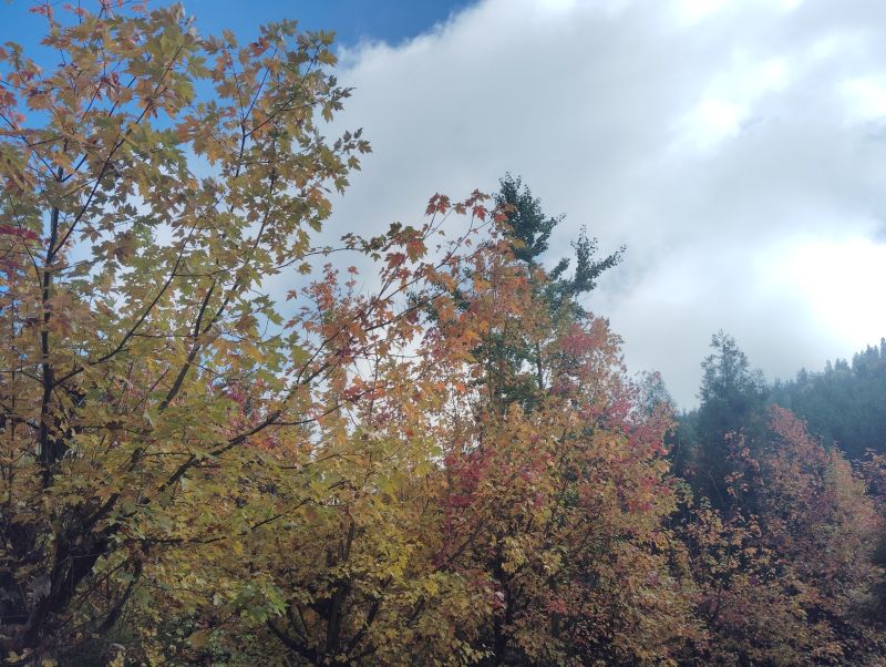 领队小姐姐性格很好,枫叶还没咋个红,但是遇到了蓝天晴天,很开心,还锻炼了