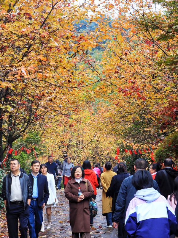 枫叶还没有完全红,不过全程路途还是比较好走,景区比较热闹!刚进门的地方吃酸辣粉的比较多。