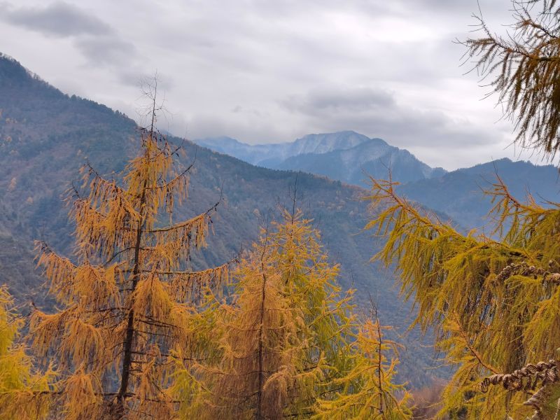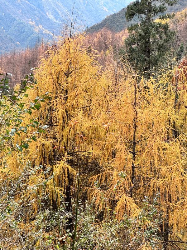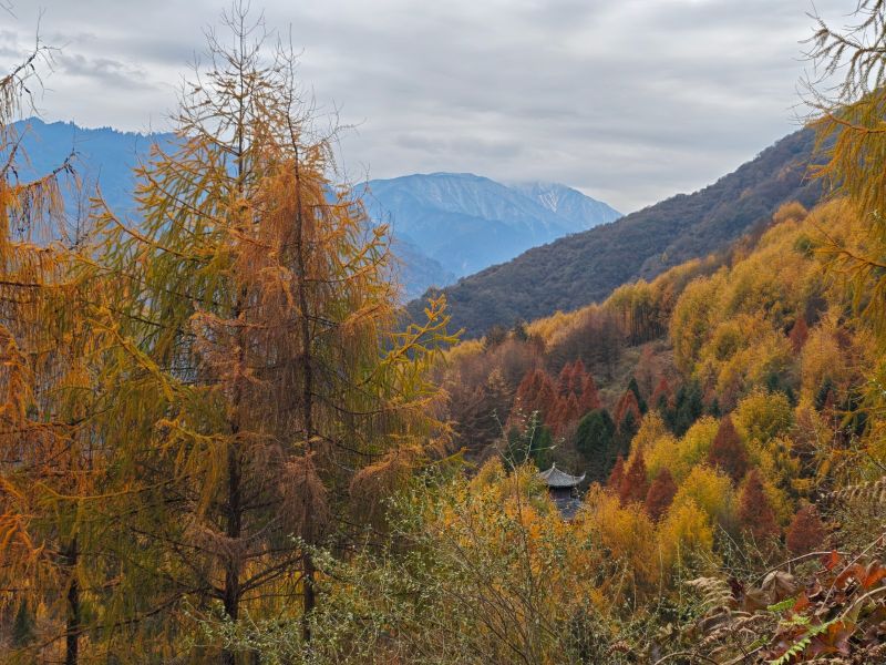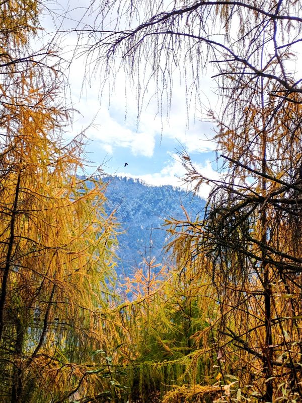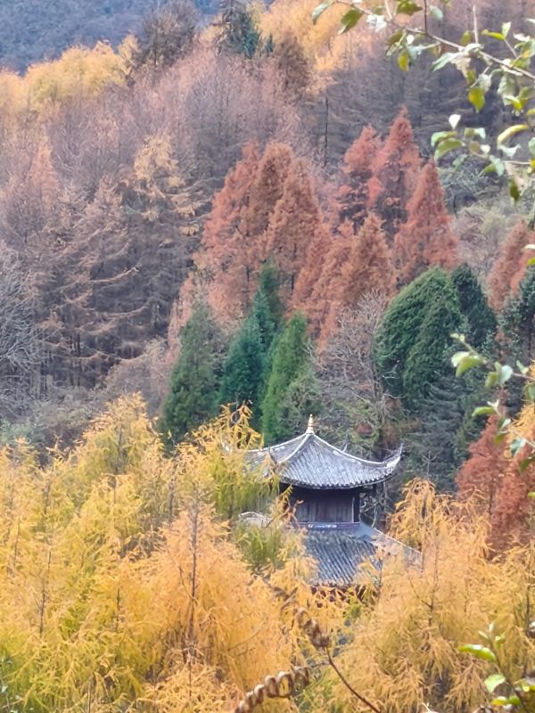 整个行程轻松愉快,领队也很认真负责,行进中提醒各种注意事项,尽管错过了最美的时候,在11的指引下,还是看到寺庙、雪山和金色的松林交相辉映的美景,非常开