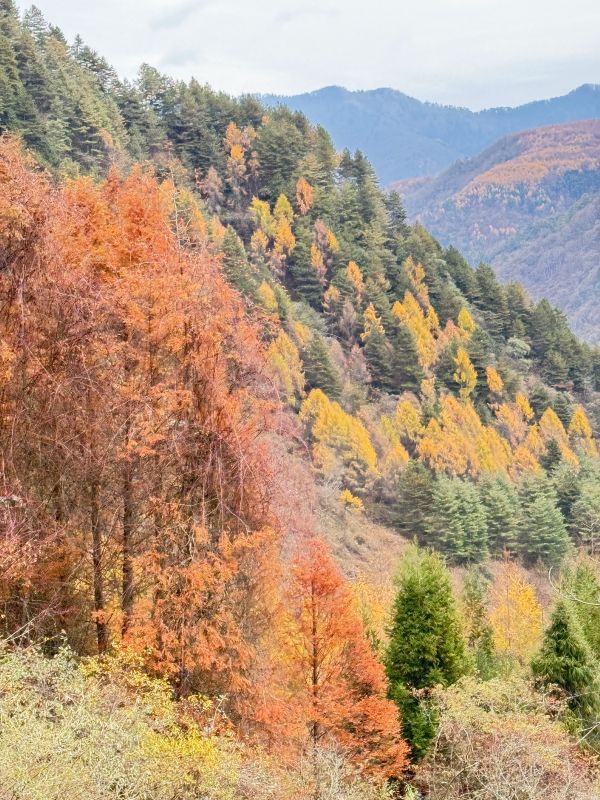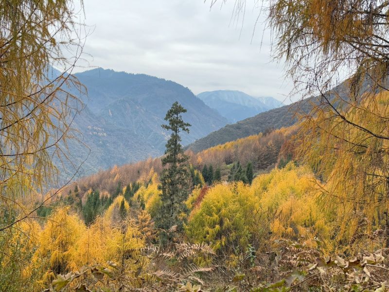 这个行程基本都是走公路,对膝盖友好。领队认真负责,天气太棒了,远处的雪山和金色松林在阳光下熠熠生辉