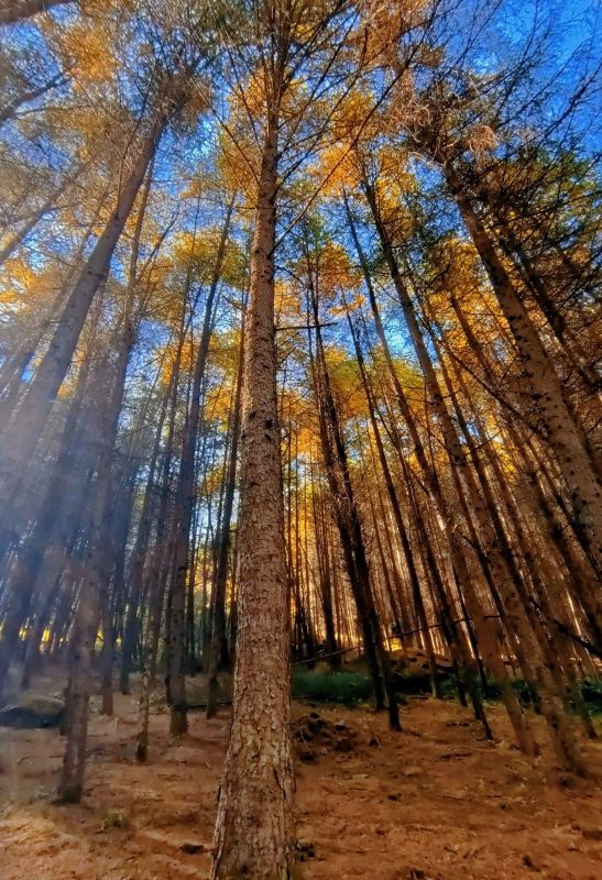 虽然来晚了点,好多松叶都落了,但往高处走景色还是不错的。