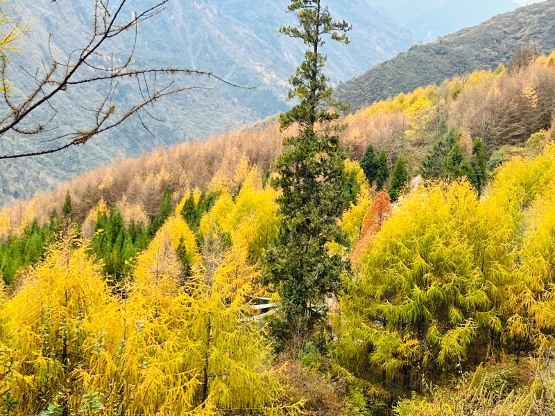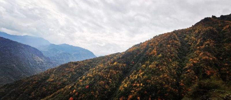 这条线路很轻松悠闲,徒步路程短,路好走,一路上看风景拍照,上下山全程公路,领队很负责任,漫山遍野的彩林,很漂亮!