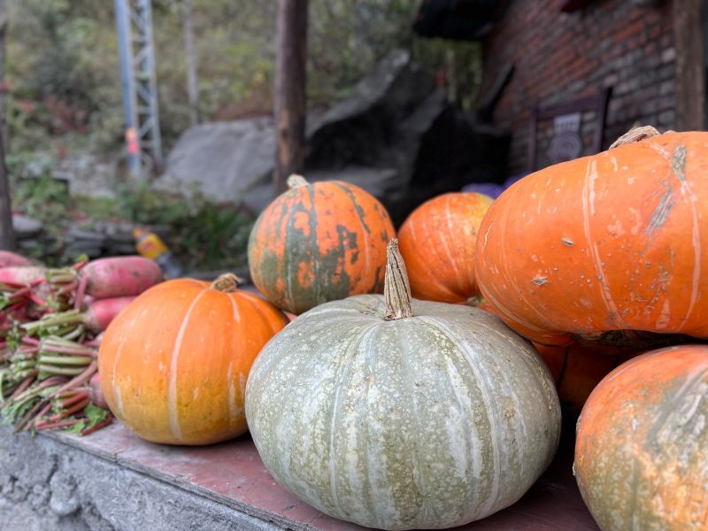 今天天气不错,空气好,榴莲热情负责,阳光照在松林里很美,我们去地里拔了萝卜,在路边碰到买了真资格的牦牛肉回家炖萝卜巴适