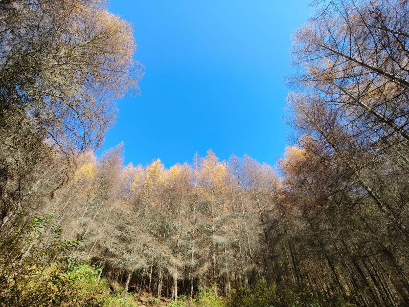 秋风染黄了松林,越往里走,仿佛误入了一片秋天的人间仙境,随手一拍就是大片。
