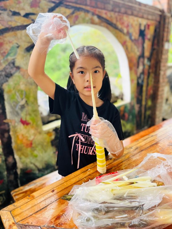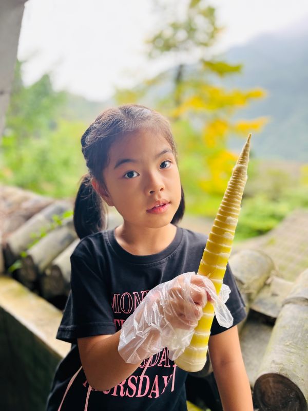 今天的旅途特别休闲,带娃去挖笋子很开心,一下车就是青山的味道,负氧离子拉满。很开心今天是太阳,吹着徐徐的山风,观察者竹林里的野趣。。要表扬一下我们的领队小娟,非常负责,旅途细节很详细周到。