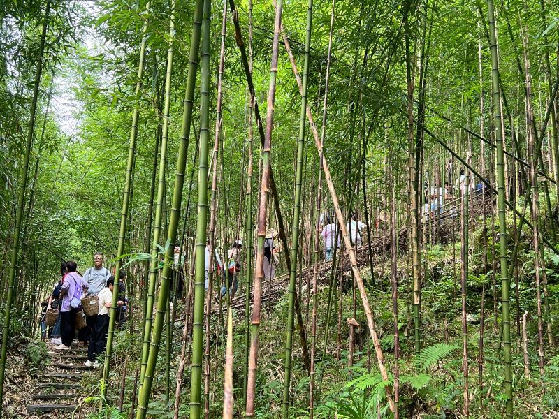 竹林风景美,笋子宴也不错。徒步距离不长,但上去时都是山路。领队安排合理。