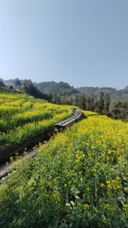 看油菜花怎能不去犍为一次呢[呲牙]蒸汽火车和鲜艳的黄菜花配配配。