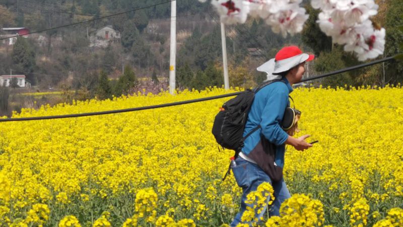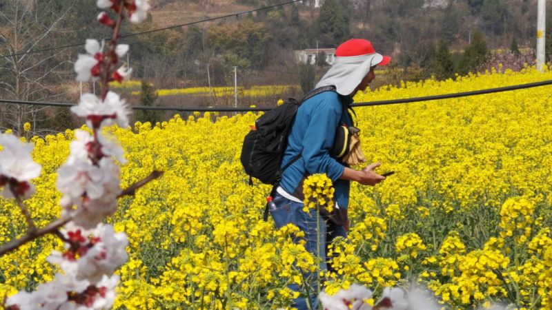 花丛中的班长是不是很帅!今年的天气,过两天去油菜花开得更盛!