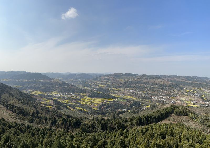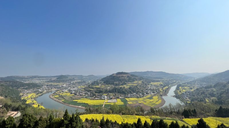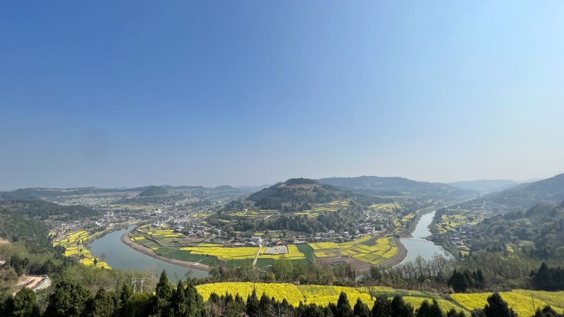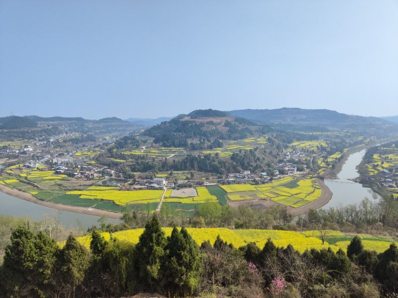 凯江大回湾,这里有个观景台,人很多,简单吃了个午饭,点了份狼牙土豆,吃了自带的面包和牛奶,以及半个别人给的苹果,开始了野外穿越,全程走完15公里,没有太大的爬升,倒是有几处比较陡的下坡。天气是个大晴天,在外面走还是很晒,快接近夏天的温度,整体来看算是比较舒服的徒步感受。