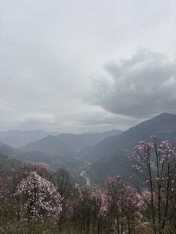 辛夷花盛开期,正是美丽的时候,在云朵的加持下宛若仙境,如果有蓝天就更好了,感谢土豆一路上给我们拍美美的照片
