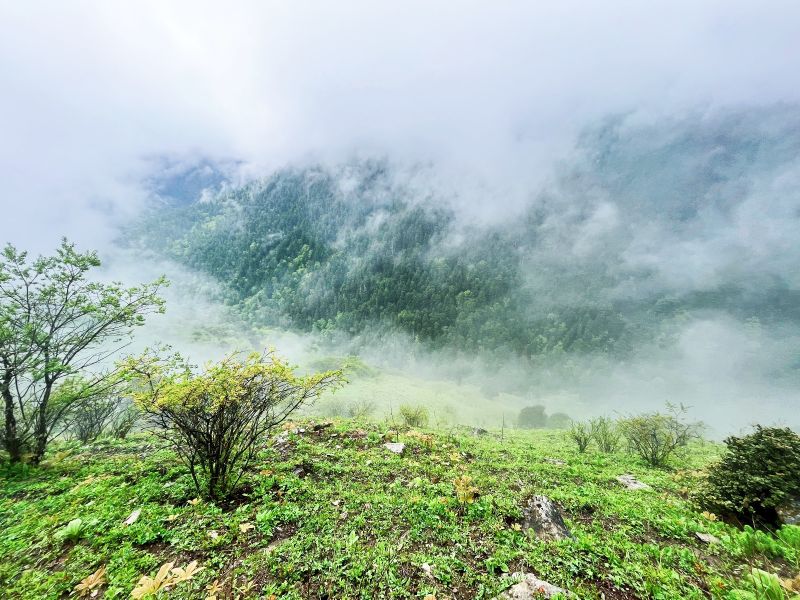不要怀疑,这条线看起来平平无奇,就是从巴朗山隧道公路口子那儿往下走,山腰小道一直到邓生沟口,清新的阴雨天也很配,属于有点虐不太虐的路线,二虐二虐的,墙裂推荐,邓生沟口小卖部大爷大娘的土鸡很巴适,早点出沟扭到他给你逮个活鸡杀,价格公道,飞鸡活蹦乱跳真的不要太安逸