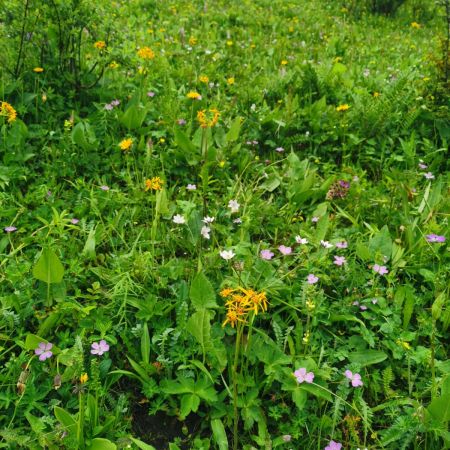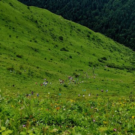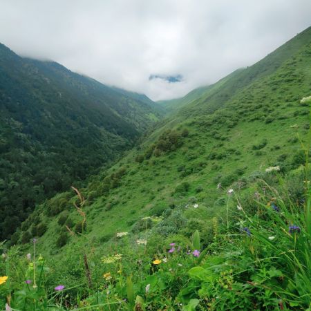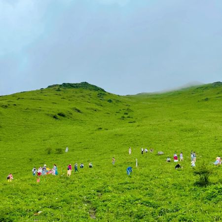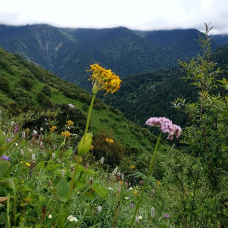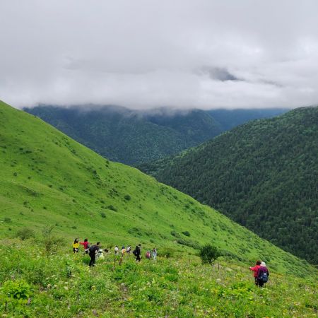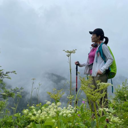 第一次走这种B线啊,都说这是偏简单的B线,我觉得应该也是,但是走完脚还是好痛呀,不过很快乐,我觉得,我们的领队文子真的蛮好的,而且我感觉那种方式很好,就是让向导走前面,然后领队走最后这样的话也不会耽误这个团的行程,也可以帮助那些就是走不太动的妹子,其实我觉得这种线路走起来就心情特别愉快,然后就感觉到处都是绿油油的小花花盛开,在草原上就觉得神清气爽,而且感觉真的云雾缭绕,晴天的时候又非常的明媚,就很美好呀~久在樊笼里,复得返自然