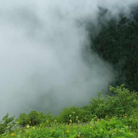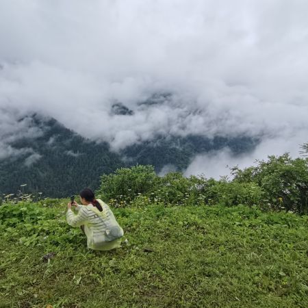 今天巴郎山全程下雨,不得不说简直是老天给我们考验,有几个小伙伴摔了好几次很狼狈,但还是抵挡不住大家雨中各种拍美美的照片的兴致。今天是两个行程在一个车上所以有两位领队阿布和命言,都是非常热情和负责的小伙,阿布是我们这个行程的领队,帮后面的姐姐妹妹们拍照互送她们一起下山,车上还照顾生病的朋友还和大家一起唱歌,氛围很好,做事比较负责,原本可能有些遗憾的五天行程也在大家的欢声笑语中弥补了。总之,也算是很美好的一天,感谢相遇。