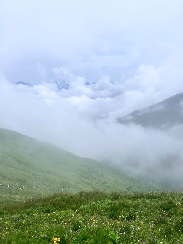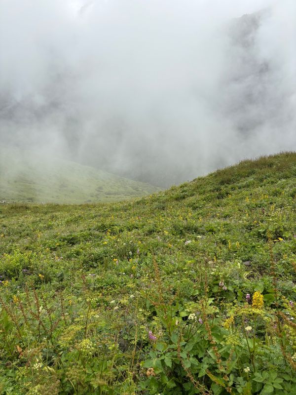 第一次参加巴朗山下穿线路,体验感还可以,赶上了最后一波野花,就是天工不作美,一直是大雾,如果蓝天白云就更好了