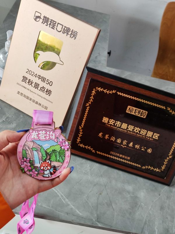吸氧洗肺好去处,龙苍沟一日游超棒体验! 本周末,我终于打卡了心心念念的龙苍沟,真的太惊喜了! 早上从成都出发,大概两个半小时的车程,一路高速路况很好,沿途风景也不错,完全不会觉得无聊。到了景区,空气一下子就变得格外清新,满满的负氧离子,深吸一口,感觉心肺都被清洗了一遍。 我们选的是叠翠溪路线,全程8公里左右,边走边玩大概花了3个多小时。这条路线真的很适合像我这样不太爱运动的人,全程都是平缓的栈道,走起来轻松又惬意。一路上,古树参天,阳光透过树叶的缝隙洒在地上,形成一片片光斑,特别美。耳边是潺潺的流水声和清脆的鸟鸣声,仿佛置身于仙境之中。 沿途的风景更是绝绝子!翡翠般的溪流清澈见底,能看到小鱼小虾在水里欢快地游来游去。瀑布一个接着一个,龙翔瀑布气势磅礴,雨花瀑布则如丝丝细雨般温柔。还有那片杜鹃戏水的区域,虽然去的时候杜鹃花已经谢了,但想象一下花开的时候,一定美不胜收。 最让我惊喜的是,景区现在还有打卡领奖牌的活动!在游客中心扫码进入小程序,按照提示找到7个打卡点中的任意6个打卡,就能在结束后回到游客中心领取奖牌啦,超有纪念意义! 下午四点左右,我们就踏上了返程之路。虽然一天的时间很短暂,但龙苍沟的美景已经深深印在了我的脑海里。下次有机会,我还要再来,探索其他的徒步路线!真心推荐大家也来龙苍沟感受一下大自然的魅力!
